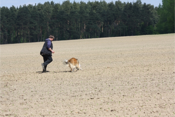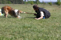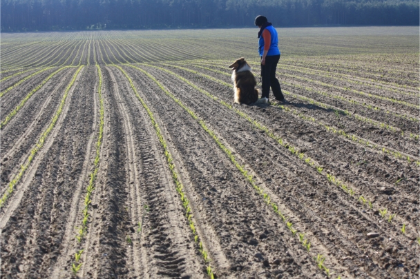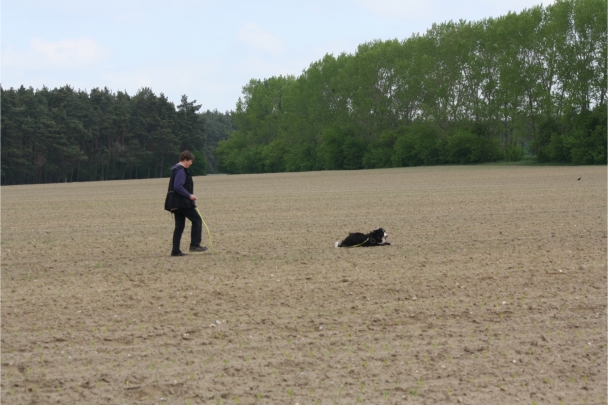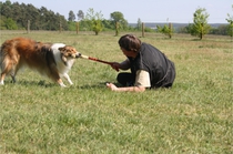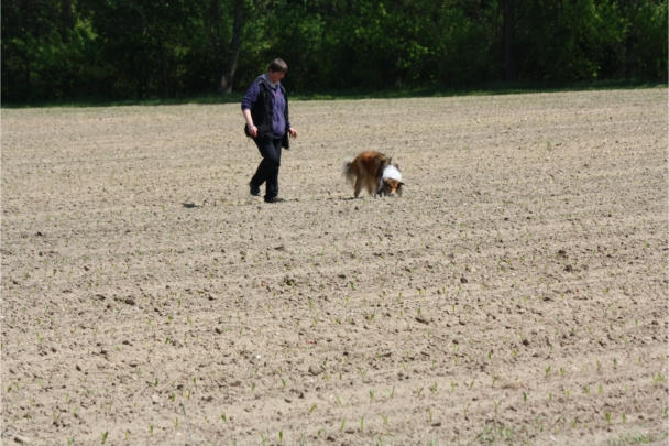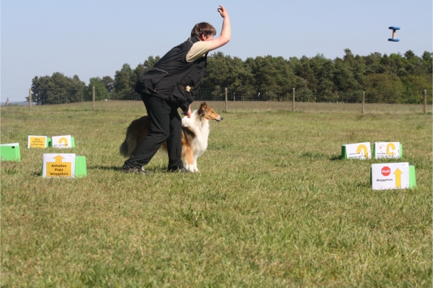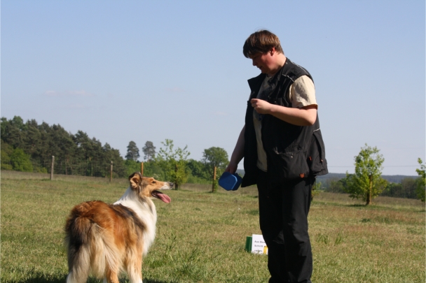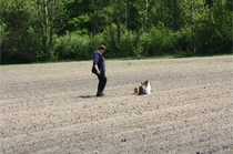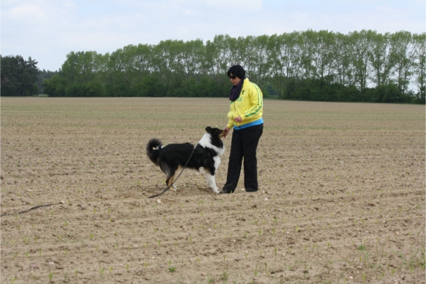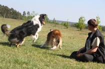 Conny und Cyrus beim Unterordnungstraining.