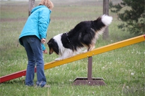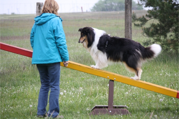Susan übt mit Ivy fleißig Wippe.
