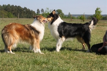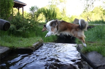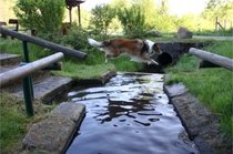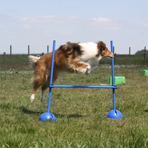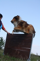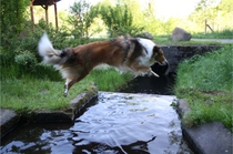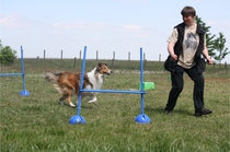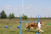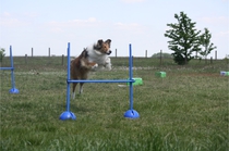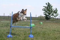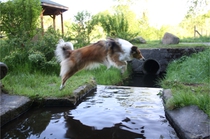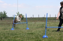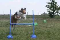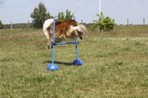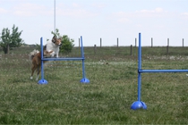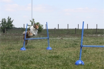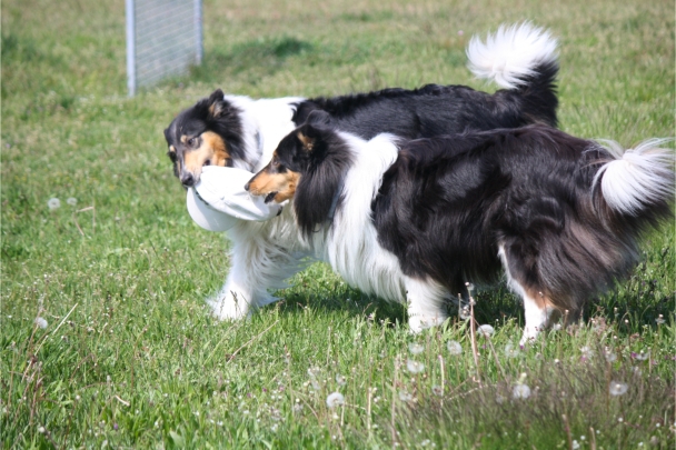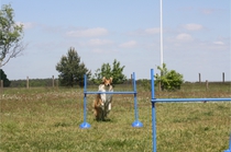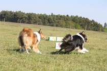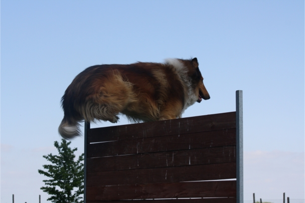 Ronja beim Sprungtraining. Erst nur eine, dann doch beide. Dann höher, und ups - zu hoch! Danach mit Mühe zu einem Abschlußsprung überredet. Danke an Frank fürs Fotografieren.