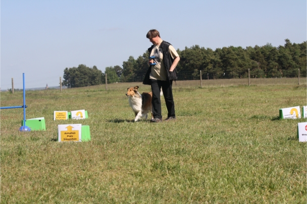 Grit mit Kaja und Flocke beim Rally Obedience und Rally Dogdance.