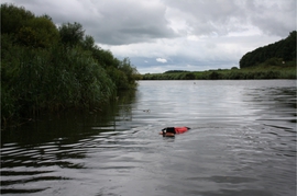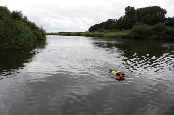 Morgens zum Schwimmen an der Eider. Ronja hatte allerdings weniger Lust aufs Wasser, und war wenn schon, eher für Uferpiraterie zu begeistern.