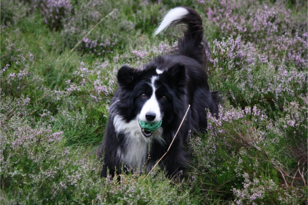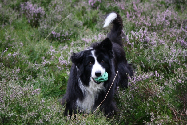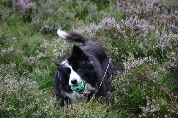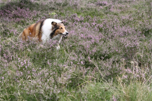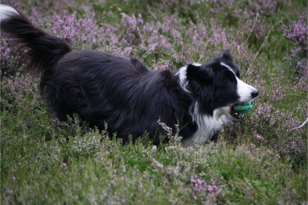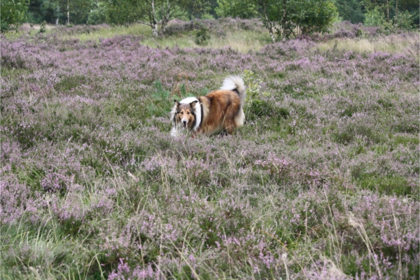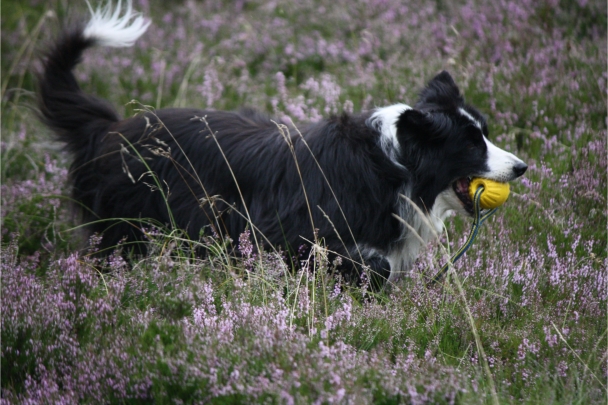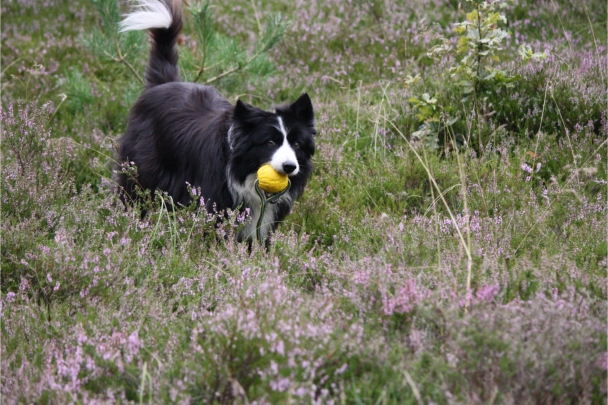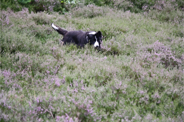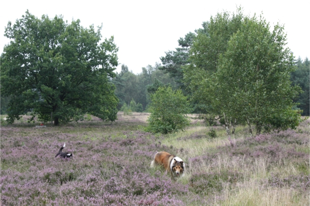 Für Rennfotos Hunde abgesetzt und Bälle ausgeworfen. Daraus wurde im Heidekraut dann ziemlich intensive Sucharbeit.