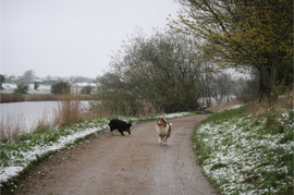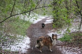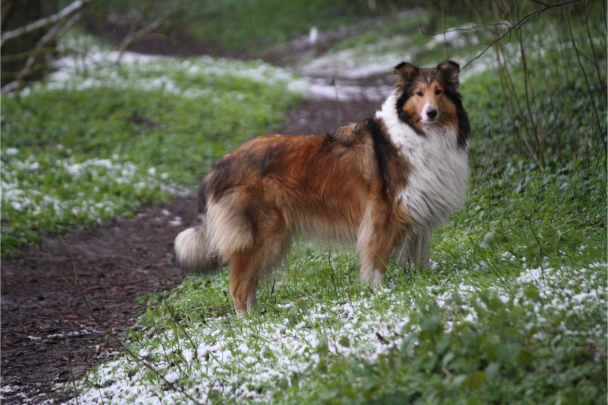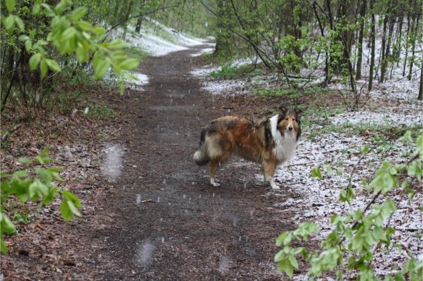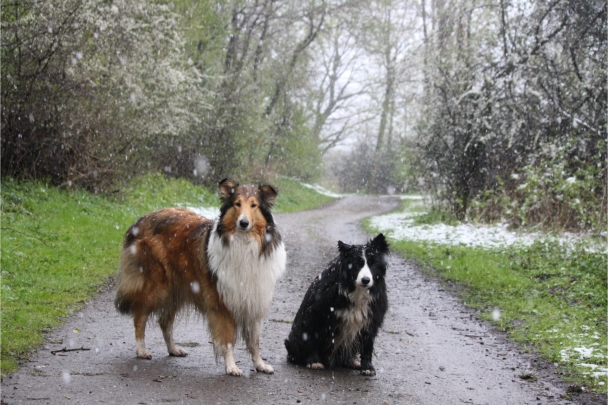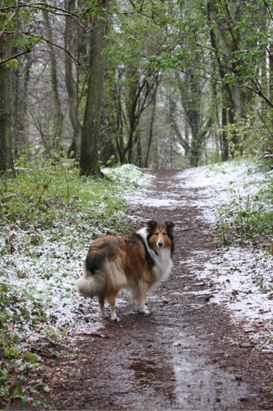 Heute morgen dachte ich, ich seh nicht recht. Zu Beginn der Morgenrunde war es schon am tauen, aber dann fing es wieder an zu schneien. Vormittags, während ich im Büro war, gab es dann sogar noch richtig viel Schnee.