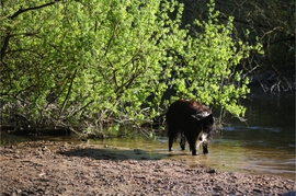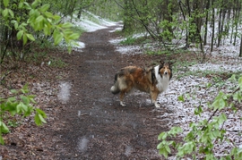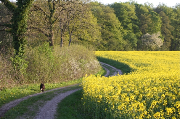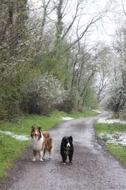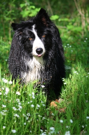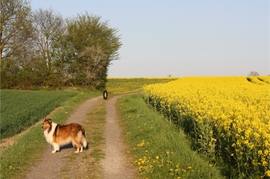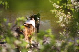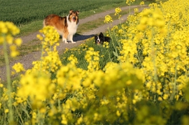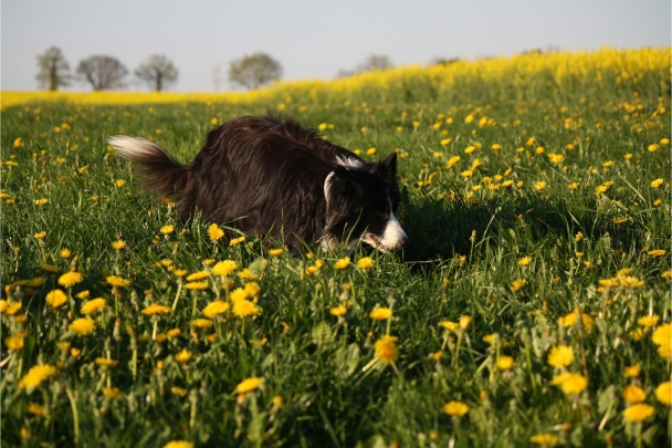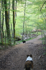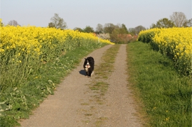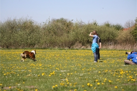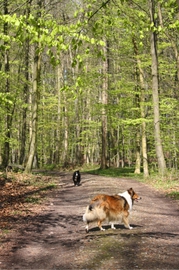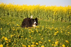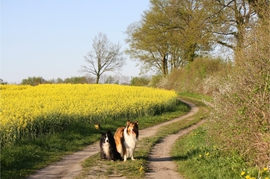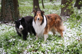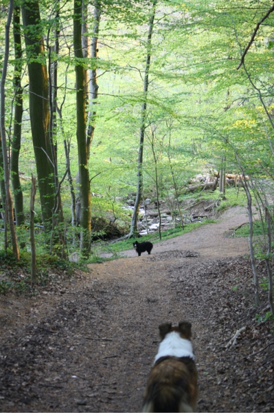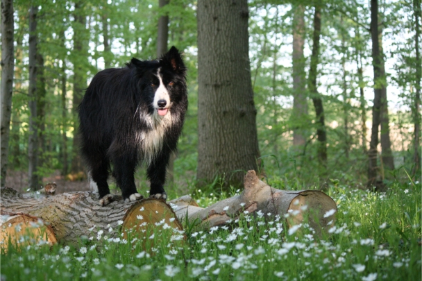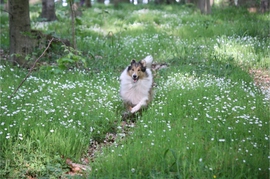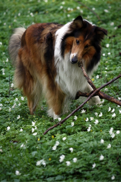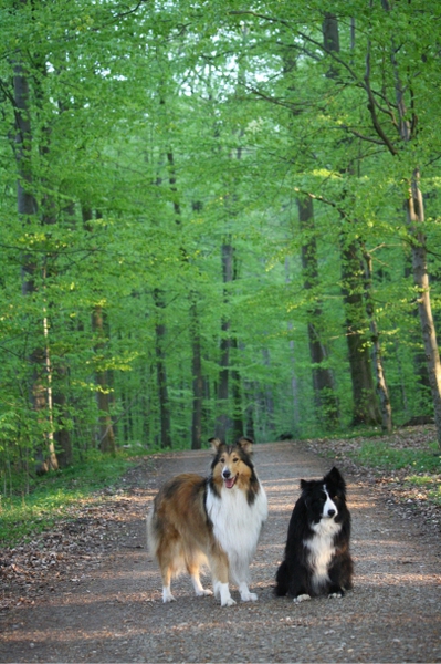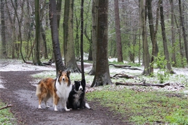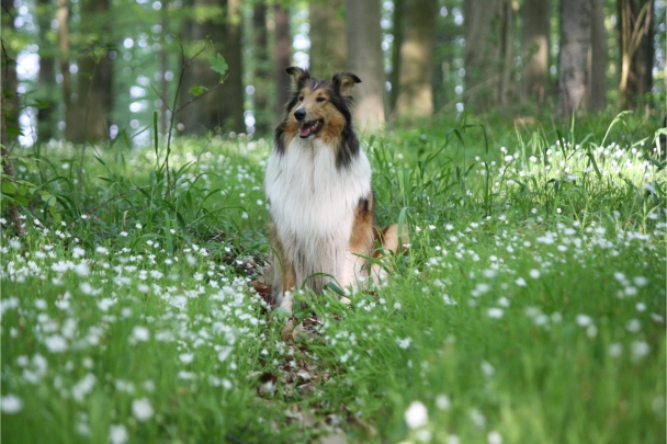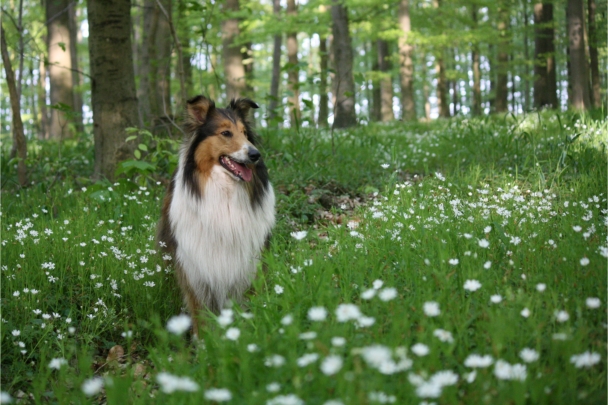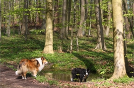 Am 1. Mai waren wir als Zuschauer beim Dogdance Turnier in Flüggendorf. In der Mittagspause durfte Ronja mal zum "Ring ist positiv" Training im Ring (Reithalle, blickdichte Ringbegrenzung und Teppichboden) mit mir und Schaffellpüschel spielen. Da konnte sie sich drauf einlassen, obwohl ihre frühere Unbeschwertheit mit Hallen und anderen ungewohnten Umgebungen leider völlig abhanden gekommen ist. Eine Choreo haben wir derzeit nicht einstudiert, aber das wäre hier sowieso noch zu viel gewesen. Außer Atmosphären Training (mit Ronja alleine) und Gucken waren wir (inclusive Annouk) vormittags (mit Foto) und nachmittags (ohne Foto) ausgiebig im dortigen Wald spazieren. Herrliche Sonne, herrliches Maigrün und viele Waldblumen. Einfach schön!