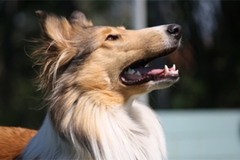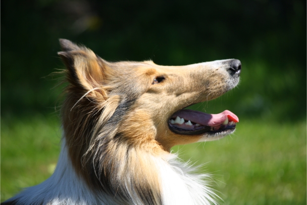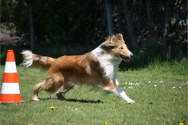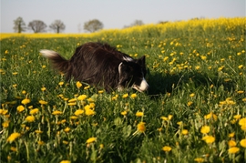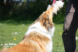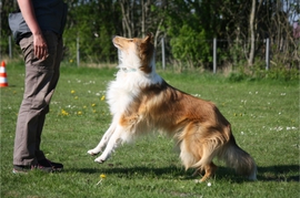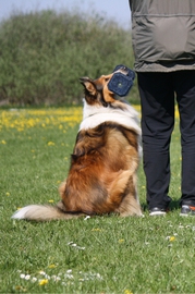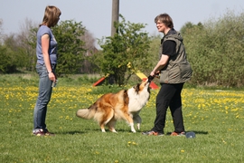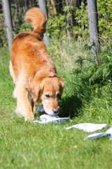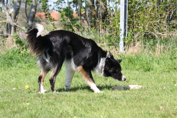 Fotos: Dante bei der Geruchsidentifikation mit Taschentüchern, fürs UK Obedience.