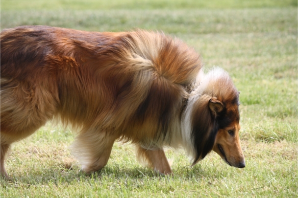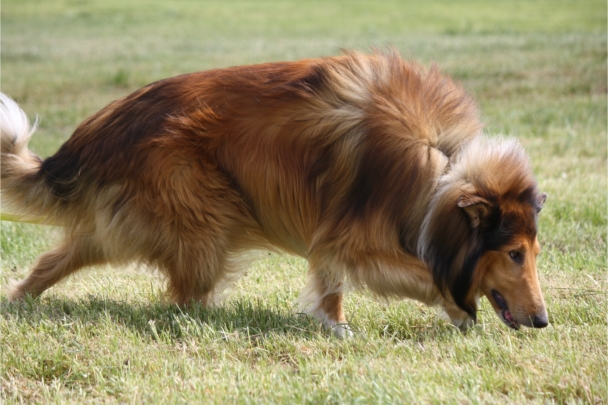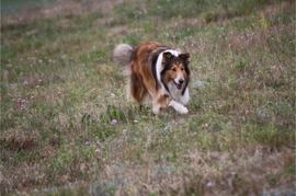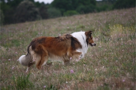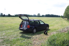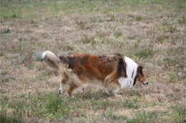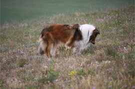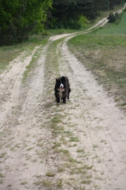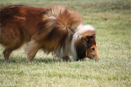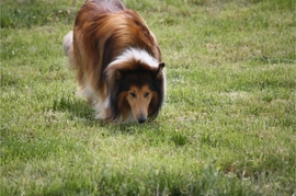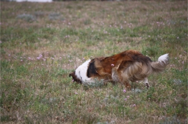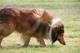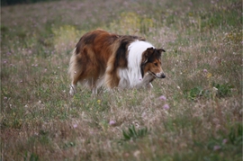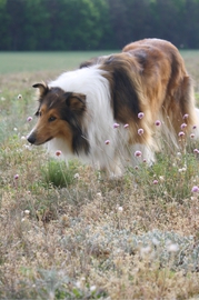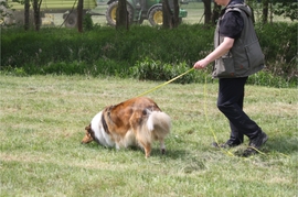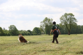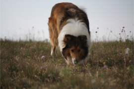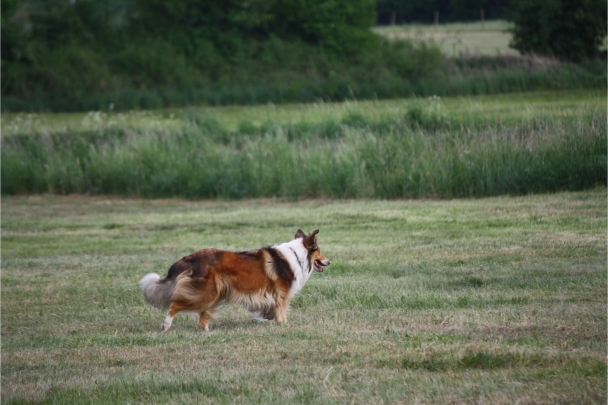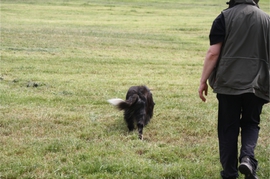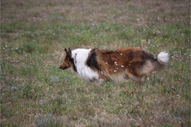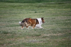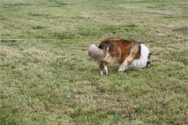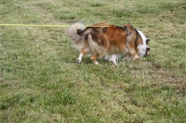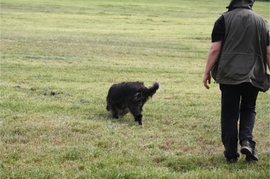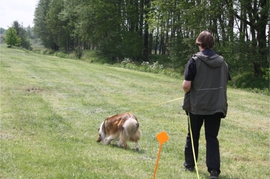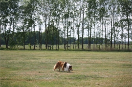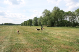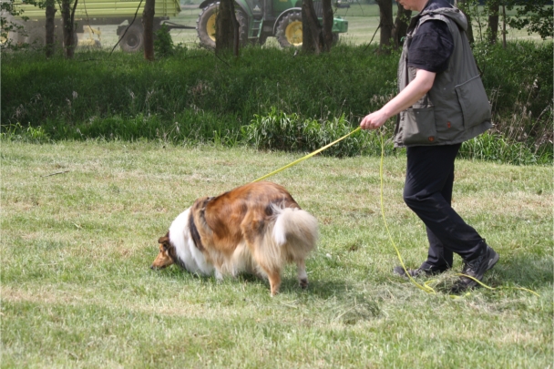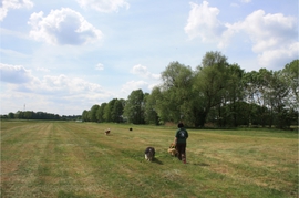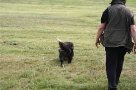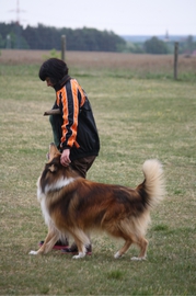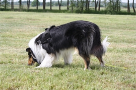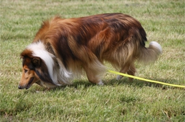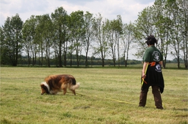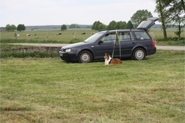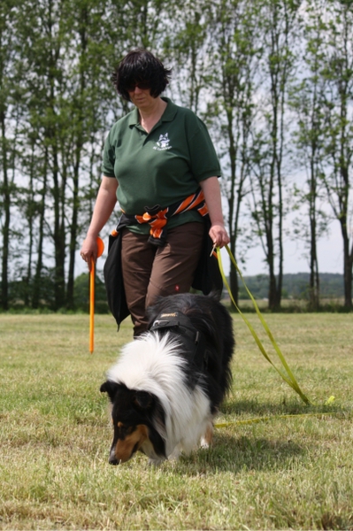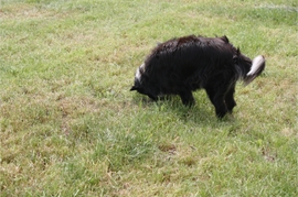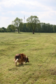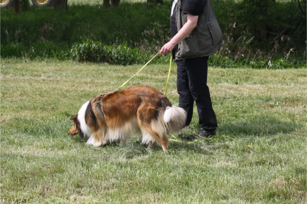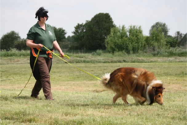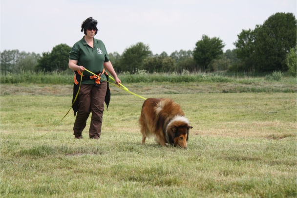 Am 20. Mai waren wir zum Fährten auf der Wiese, die zuerst, also ein paar Tage vorher, gemäht worden war. War aber sehr schwer. Twister hat sich durchgekämpft, Cyrus hat seine kurze Fährte gut geschafft, und Ronja hat ihre Fährte verloren, und ich hab abgebrochen. Annouk ist dann beim Freisuchen auf Ronjas Fährte an gleicher Stelle total raus gekommen, hat aber über freies Suchen noch die Döschen und Gegenstände, und z.T. auch die Fährte wieder gefunden.