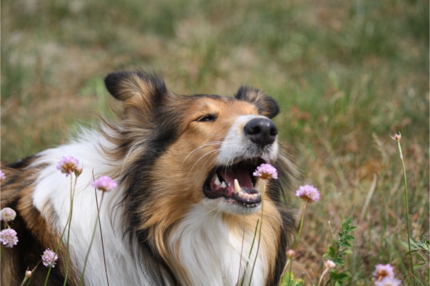 Nach den Vorführungen war ich mit meinen Mädels wieder auf der großen Wiese zum Knipsen. Gab auch etwas Tricks und den Ball, so das in der Mittagssonne dann schnell die Zungen hingen. Zum Posen mit Blümchen hatte Ronja eindeutig keine Lust, und sie hat mal eben schnell die Blütenköpfchen abgezupft :-)