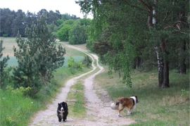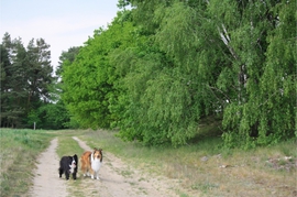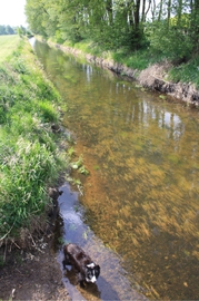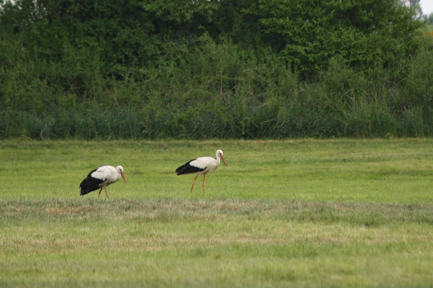 Nachmittags waren Conny und ich dann auf den großen Fährtenwiesen am Bach spazieren (Annouk natürlich auch im Bach, und Ronja beim Trinken sehr darauf bedacht, das nur 3 Füße naß werden :-) ). Außer uns waren dort u.a. auch 2 Störche unterwegs.
