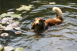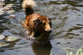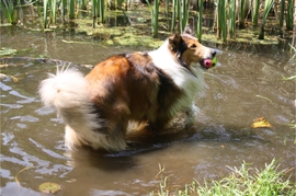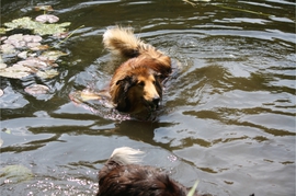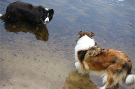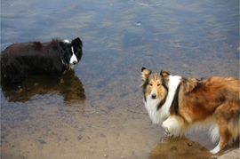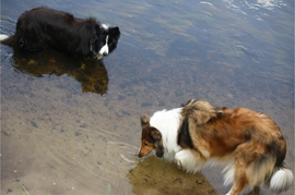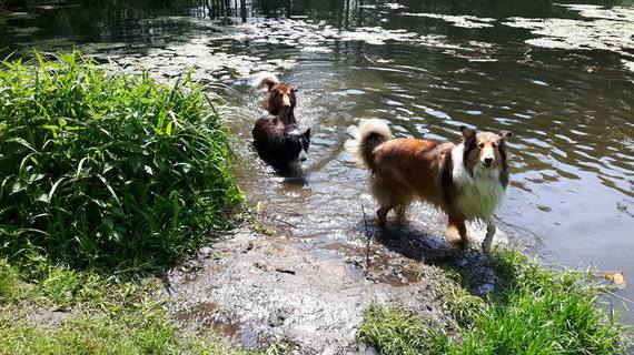 Bevor wir dann zum Hundeplatz gefahren sind, waren wir noch an einer schönen Badestelle. Annouk sollte ja noch etwas auf ihre Kosten, was Wasser betraf, kommen. Und die Collies hatten auch ihren Spaß.