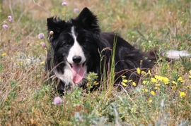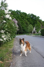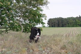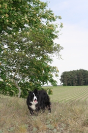 Am 19. Mai waren wir wieder auf der Wiese. Nach dem Legen wollte ich Annouk etwas in den Bach neben der Wiese lassen, dann wollten wir etwas spazieren. Die Wiesen nebenan waren schon gemäht, bzw. wurden grad, fast - nein, ganz fertig! Hektisch die Hunde gesammelt, denn der riesige Trecker schoß auf "unsere" Wiese zu, und sauste mit schaukelndem Mähwerk zwischen unseren Autos durch. Nun aber schnell, die Fährten wegsuchen, während er zum Glück erst zum hinteren Teil der Wiese gemäht hat. In der Hektik durfte meine Fährte lieber mein "alter Hase" anstelle von Ronja, absuchen damit wir alle Döschen und Gegenstände wieder sicher zusammensammeln konnten.