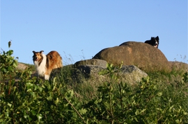 Ein schöner, sonniger Samstag Nachmittag. Eine Runde im Wald spazieren, und dann im Garten sitzen. Während Babette Kaffee gekocht hat, mußten Annouk und Stine hart arbeiten ;-) Sehr hart, denn so nah wollten sie eigentlich nicht zusammen posieren. Ronja hatte sich währenddessen hinters Haus zurück gezogen.
