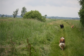Am ersten Juni Wochenende war es sehr warm und trocken. Mittags war ich mit der Rehkitz-Rettungsgemeinschaft Raum Rendsburg auf zu mähenden Wiesen nach Rehkitzen suchen. Auf den Wiesen, auf denen ich dabei war, haben wir keine gefunden. Aber zwei vom Morgen wurden mittags, nach dem Mähen wieder frei gelassen. (während dem Mähen waren sie in einer Box im Schatten, in Sicherheit). Da konnte ich so zuckersüße, kleine Bambis auch mal live sehen. Die Hunde waren dann jeweils abends, als es auch kühler, und für sie schöner war, spazieren.