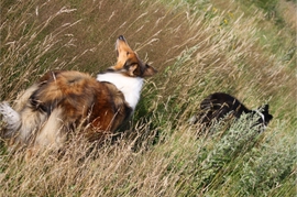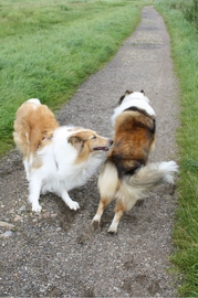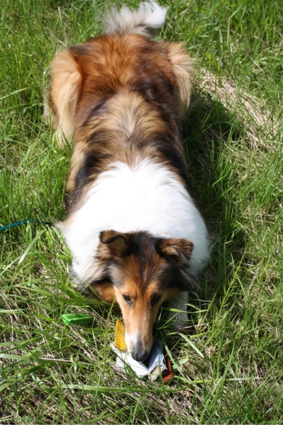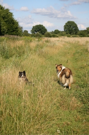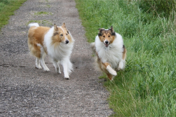 Anfang Juli hatte Ronja gehumpelt. Nachdem unsere Physio sie untersucht und "eigentlich nur Kleinigkeiten" behandelt hatte, war das Humpeln vorbei. So glücklich, das wir uns nun morgens mit dem Sheltiewelpen zum Spielen treffen konnten, habe ich Ronja dann auch keine Schonung aufgezwungen. Leider war nach ca. 1 Woche das Humpeln wieder da. Ein paar Tage darauf hatten wir den Termin bei unserer Osteopathin (den ich schon anfang Juli gemacht hatte). Sie meinte, vorne ist schon mehr, und wir sollten einige Wochen das Spielen sein lassen :-( Das Humpeln war schnell vorbei, aber das Spielverbot war schon sehr hart!