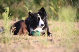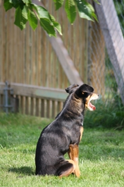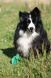 Zwischen Humpeln vorher und nachher + anschließendem Spielverbot waren wir im Juli einmal zum Obedience Training. Sogar wieder in größerer Gruppe mit 2 mal Sandra und Inga. Wir haben hauptsächlich Fokus trainiert, und Kleinigkeiten fürs Überbrücken zwischen Übungen, Abholen zum Aufstellen und an der Einstellung zum Aufstellen. Apportieren hatte ich erst gar nicht geplant (weil ich wegen dem Humpeln vorher keine Rennübungen eingeplant hatte), aber nach Auswerfen fiel mir ein, das ich da ja den Fokus aufs Apportel will. Auf die Freigabe für schönen Fokus hat Ronja dann apportiert :-)