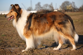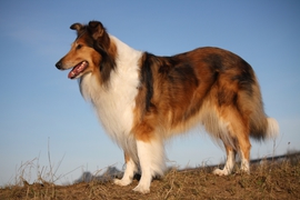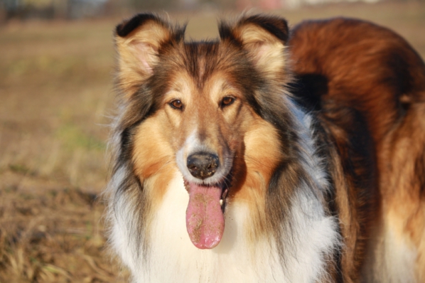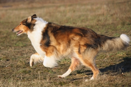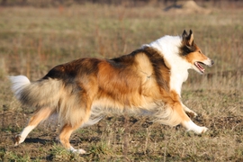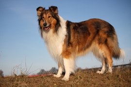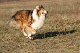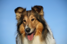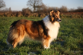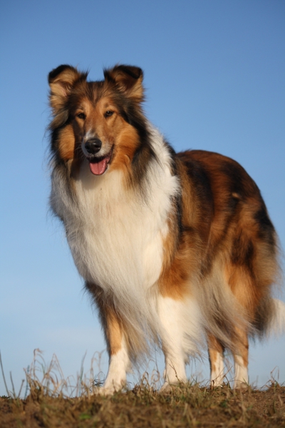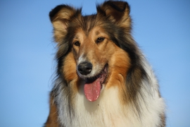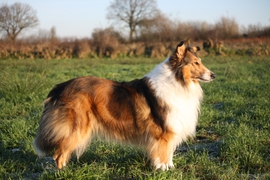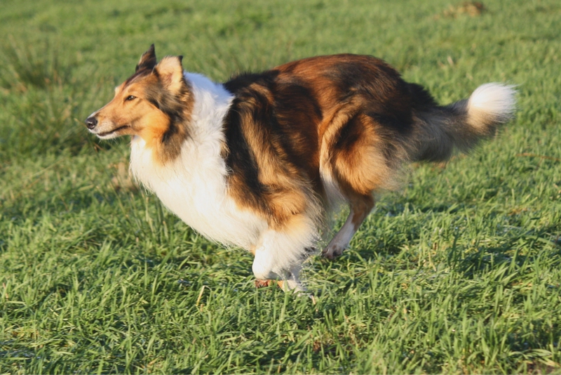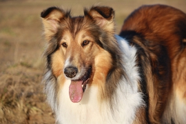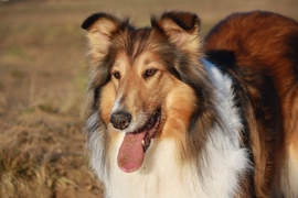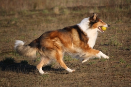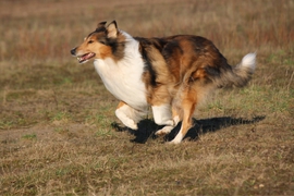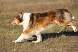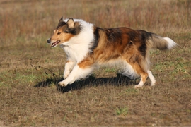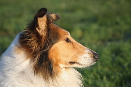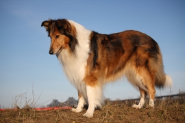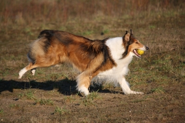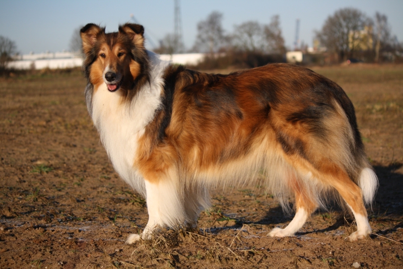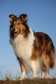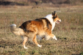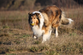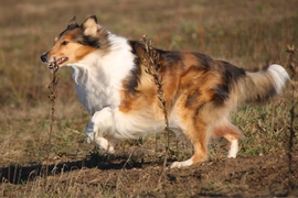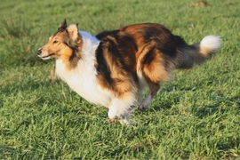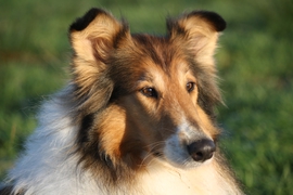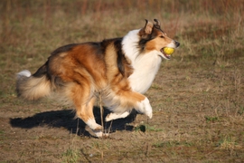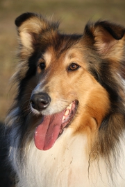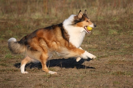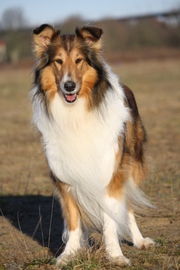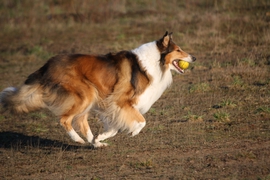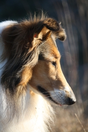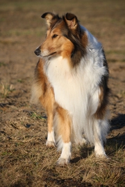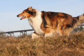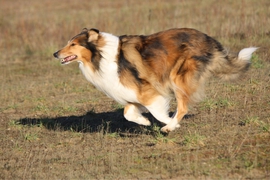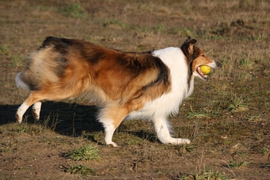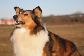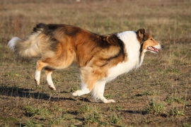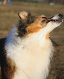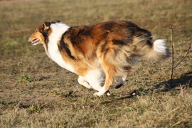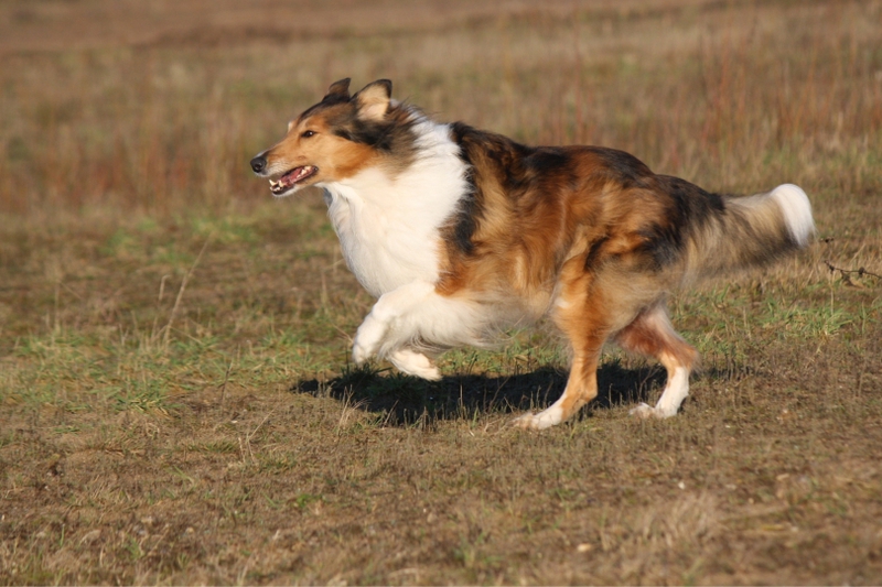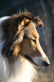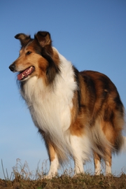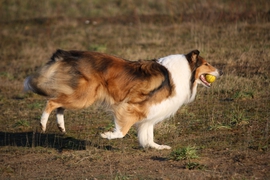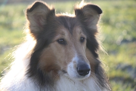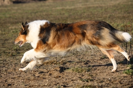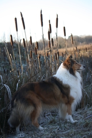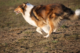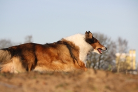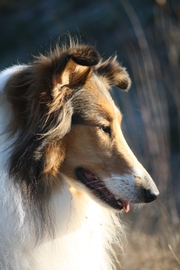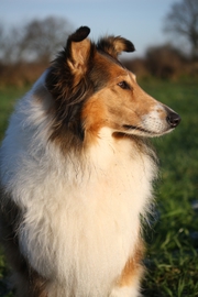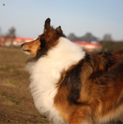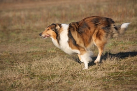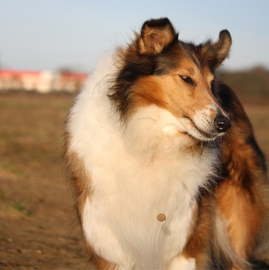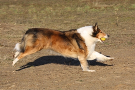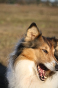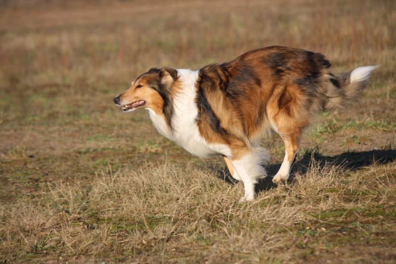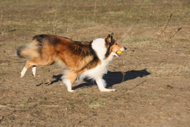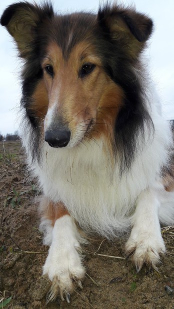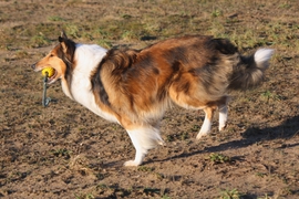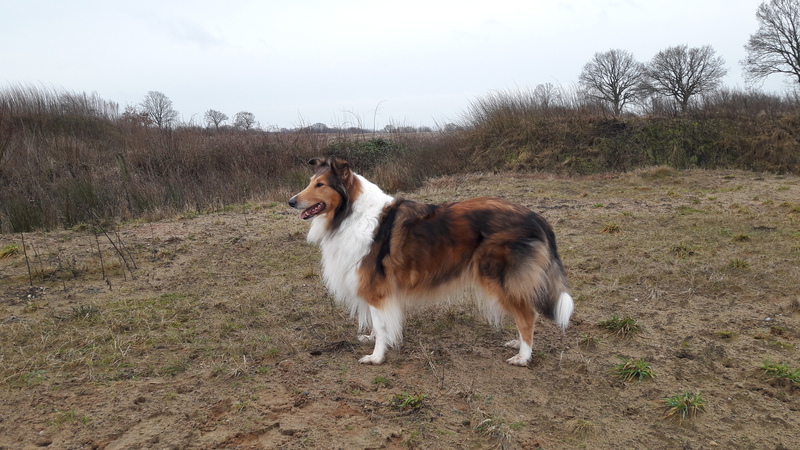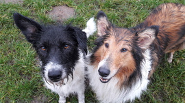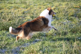 Vom Retriever Nachwuchs Simba (Tochter von Carlos) war Ronja ganz angetan. Die Kleine ist kein Vergleich zu wilden Drahthaar Welpen, und war ganz friedlich in ihrer Karre oder zwischen den anderen Hunden. Da mußte Ronja mit Spielaufforderungen auf sich aufmerksam machen. So ein fremder, vollmähniger und lauter Collie Hund war Simba nur erstmal noch nicht ganz geheuer. Beim Stop auf der großen Wiese war das Eis dann aber gebrochen, und die beiden waren sich einig zu spielen.