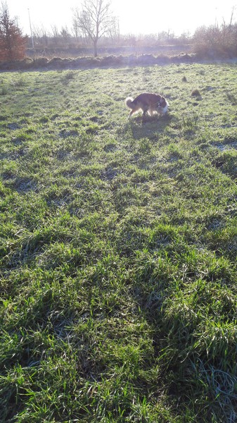 und zum Abschluss ein schönes Fährtentraining auf herrlich grüner, stellenweise gefrorener Wiese