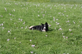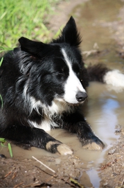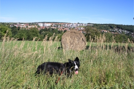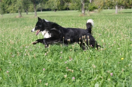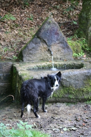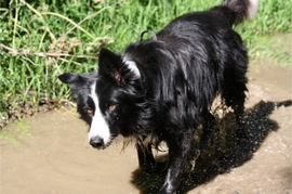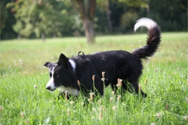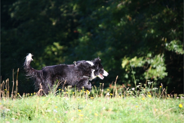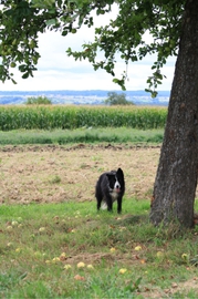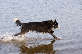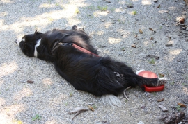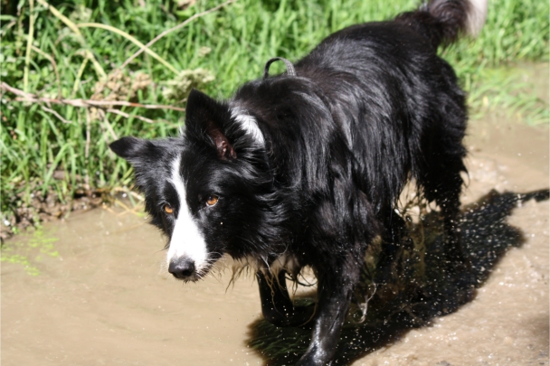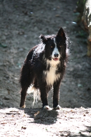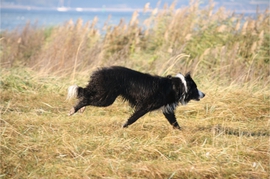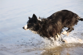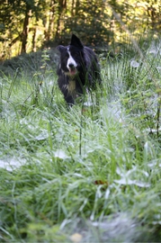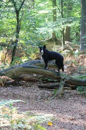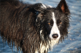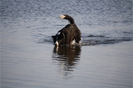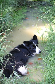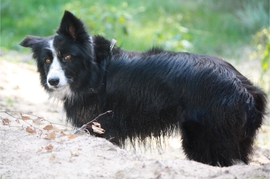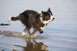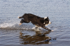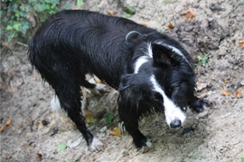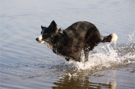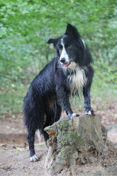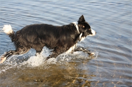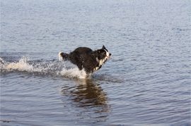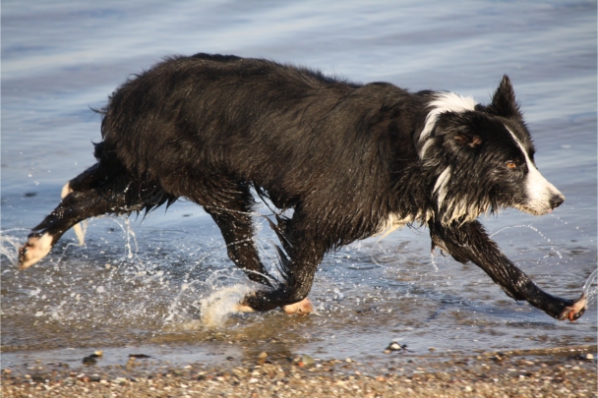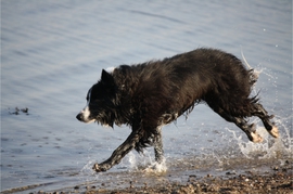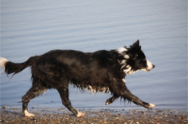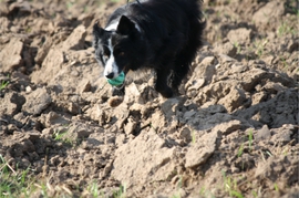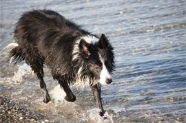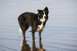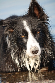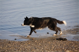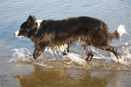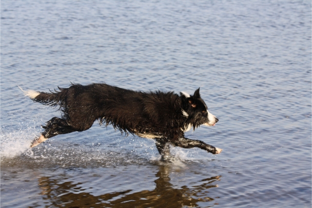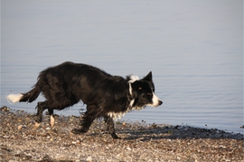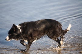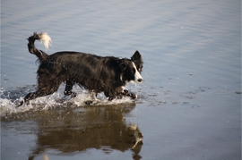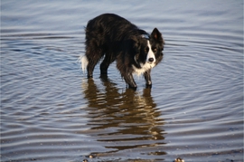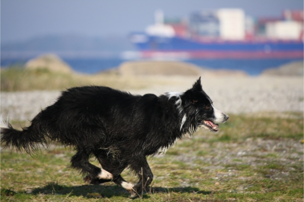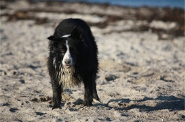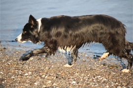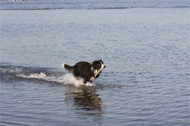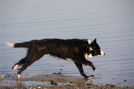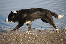20. Oktober, morgens bei Laboe. Da hatte ich kein Schwimmspielzeug mit, deshalb gab es den Dentalball z.T. im niedrigen Wasser zu erschnüffeln und ertauchen.