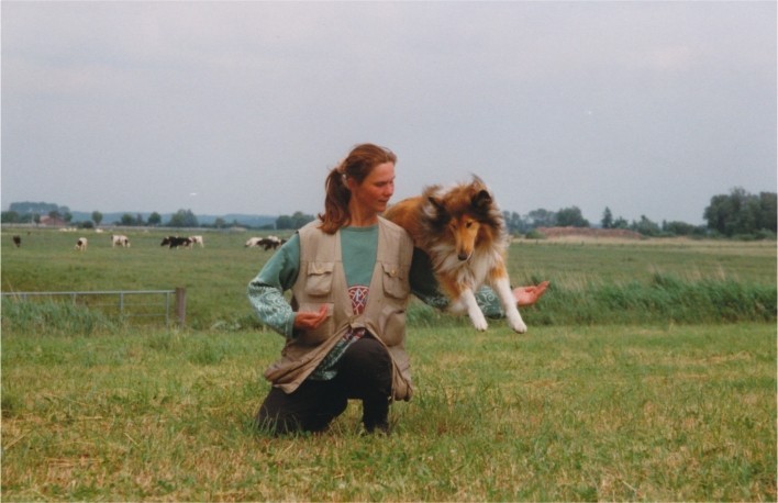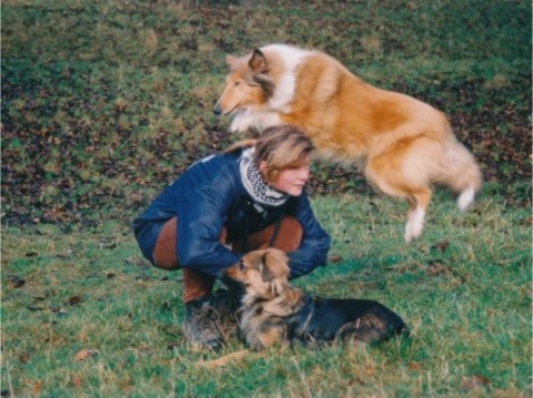 Den Sprung über hockende Person konnte Dorina auch über andere Personen. Wir haben es sogar einmal zur Freude der Kinder über fremde Kinder durchgeführt. Hier links Dörte, rechts Gina